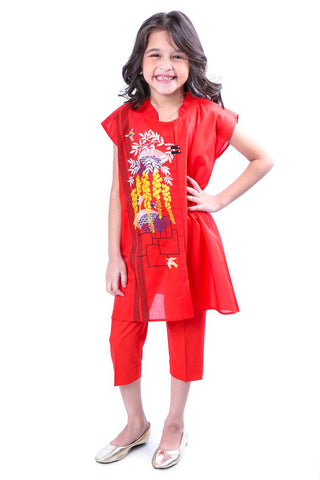 Red 2 Pc Lawn Suit GLS-18-137 KIDS