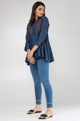 Embroidered Denim Top