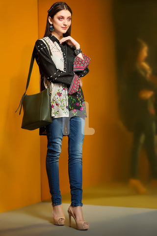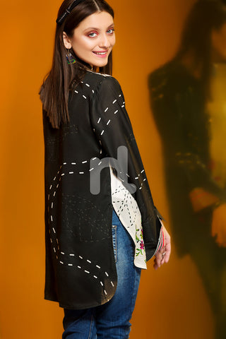 PS18-183 Black Digital Printed Stitched Micro Modal Fusion Top - 1PC
