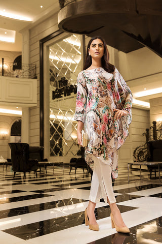 PS18-285 Off White Digital Printed Stitched Silk Shirt - 1PC