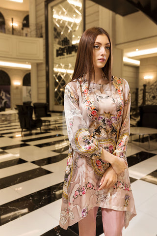 PS18-286 Beige Digital Printed Stitched Silk Shirt - 1PC