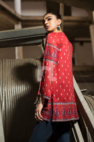 PS18-292 Red Digital Printed Stitched Micro Modal Fusion Top - 1PC