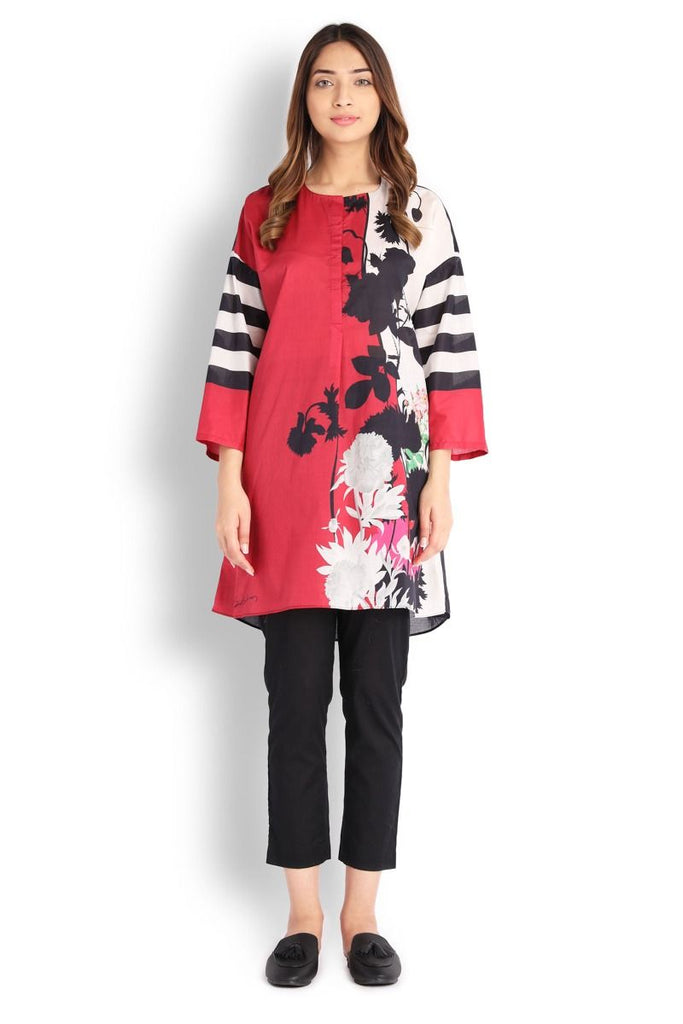 Casual printed shirt with elastic cuff sleeves. Fabric: Lawn