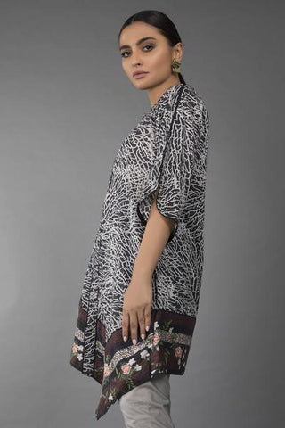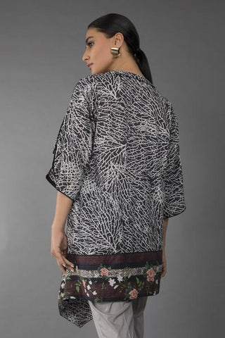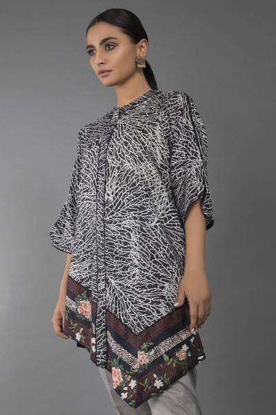 Ready to Wear Asymmetric Shirt Round NecklinePrinted Front Panel 3 Quarter Sleeves Straight Hem Printed Back Panel