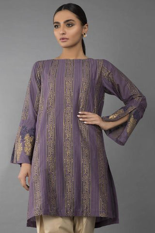 Ready to Wear Straight Shirt Round NecklineBlock Print Front PanelFull Sleeves Straight Hem Block Print Back Panel