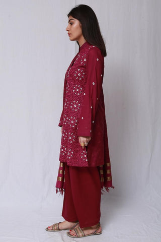 Embroidered Kurta With Sequins Embellishment. Paired With Classic Fit Shalwar And A Striped Doria Dupatta.