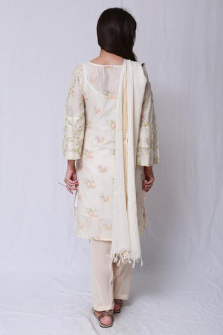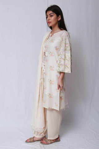 Classic Victorian Chintz Inspired Embroidery On A Shirt With Flared Sleeves And Tasseled Dorri Details On Front. Paired With A Classic Fit Shalwar And A Co-Ordinating Dupatta.
